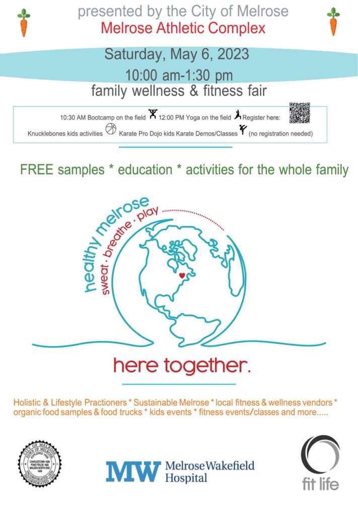 The City of Melrose presents Healthy Melrose 2023, a family wellness and fitness fair. Bring the whole family and participate in fitness events, meet wellness providers, sample organic produce, and learn how to take better care of our planet.